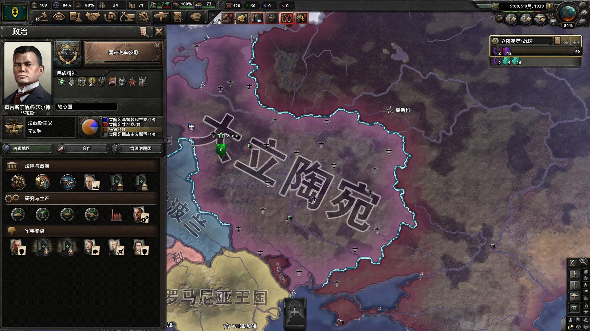 黑线:仅拉脱维亚的黑线可以成立。和德国处于同一阵营或者成为德国傀儡,点完“东方领”国策即可成立。不过这条路线只能获得白俄罗斯在波兰境内的核心。