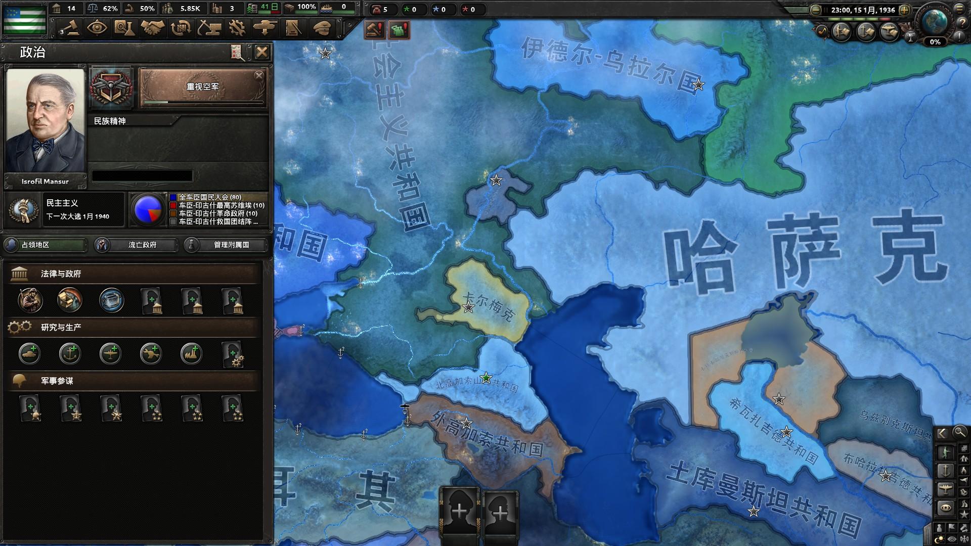 上述任意势力占领中亚五斯坦的全部地盘即可成立,能额外获得SIK、唐努图瓦、阿尔泰的核心。盛世才成赛里斯可获得核心最多的势力。