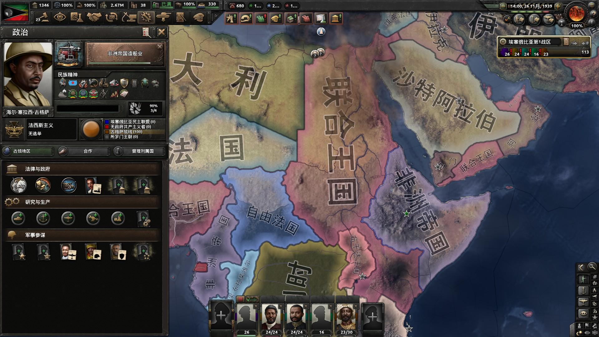 点出工业线底下“发展非洲之角”国策就会出现统一非洲之角的决议,任何一条政治线都可以成立。成立需要占据厄立特里亚和索马里兰,成立后还可以进一步扩展一些核心。