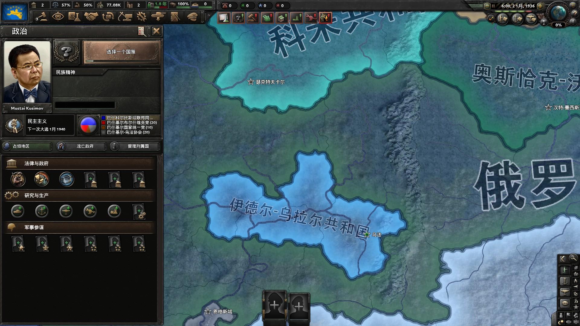 成立国:(需在规则设置里打开苏联完全解体)马里埃尔、楚瓦什、鞑靼斯坦、乌德穆尔特、巴什科尔托斯坦