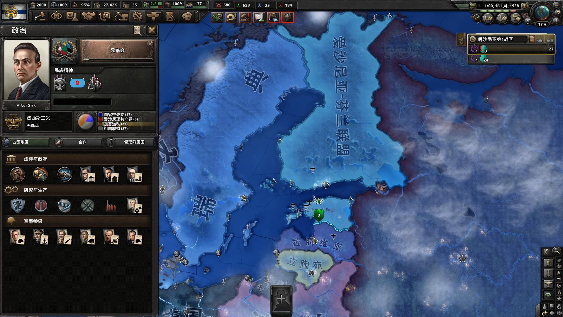 爱沙尼亚黑线联合芬兰后,走乌戈尔线成立。多出来的核心大都在苏联手上。