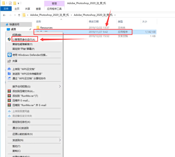 3、打开解压出来的文件夹,选择应用程序,右键以管理员身份进行运行