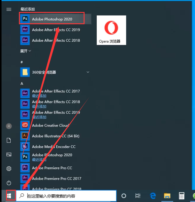 7、为了确保软件是否破解成功,打开我们安装的PS2020软件,刚刚安装的软件点击左下角的开始,在最近佳添加的地方就能看见安装破解好的PS2020,双击就可以打开