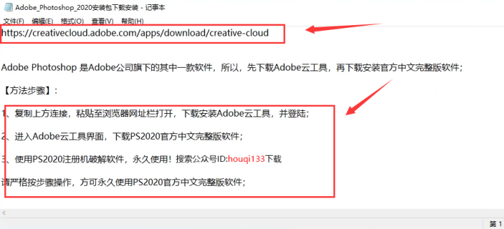 2、复制文档里的的链接,下载Adobe云盘工具,进行软件下载