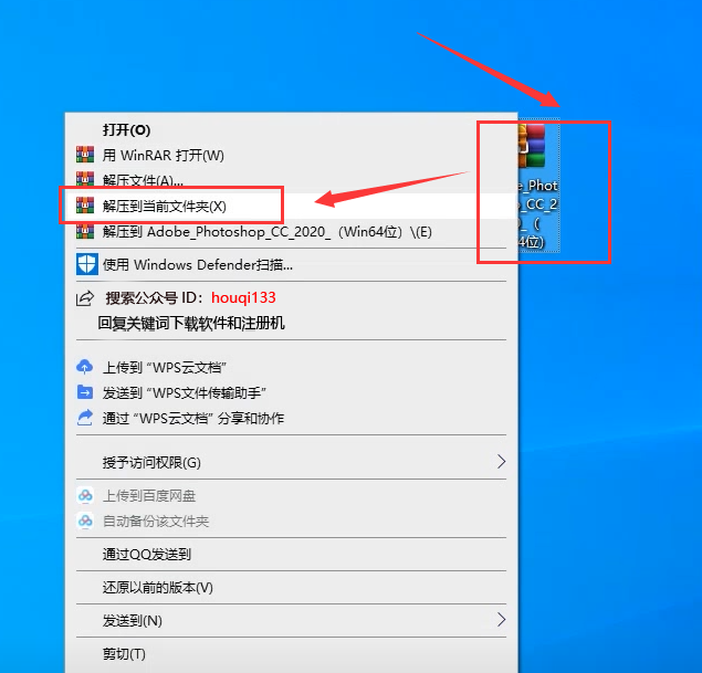 2、在公众号下载的破解补丁压缩文件夹进行解压