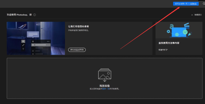 9、关掉界面之后,PS2020的软件就加载完成了,开始界面没有显示试用期,就表明我们的软件已经成功破解
