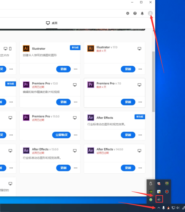 1、在对软件破解之前先退出adobe云盘,点击右下角的云盘符号,打开之后点击右上角的头像,点击进行注销