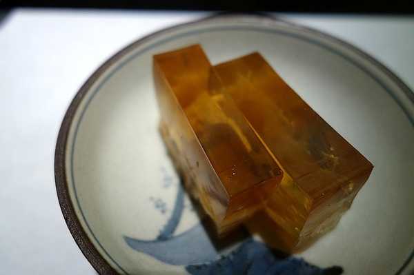 前菜是河豚鱼冻,用的是河豚脸部的鱼皮和肉。
