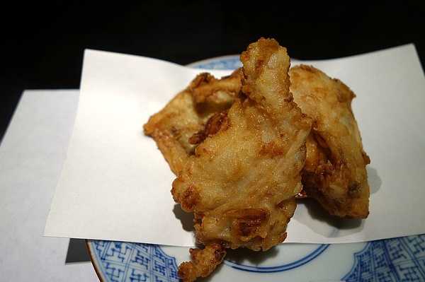 炸河豚。外皮酥脆,里面的野生河豚肉十分有弹性,完爆奈良那一盘几十条街。