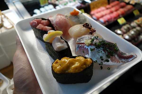 从上世纪30年代开始,唐户市场就成了日本重要的河豚批发市场。每逢周五至周日或者节日期间,这座批发市场会被改为观光市场,出售价格便宜的各类海鲜料理,其中最受游客追捧的自然是河豚。 在唐户市场这样的高性价比之地,即使把河豚刺身、河豚寿司、白子(即河豚精巢)军舰寿司、河豚粥都挑上一份,所费也不过百来元人民币。 除了河豚之外,海胆、鲸鱼、鲷鱼、乌贼等也是下关的海鲜名物。在唐户市场里溜达一圈,胃口不大的人很快就会被填饱了。