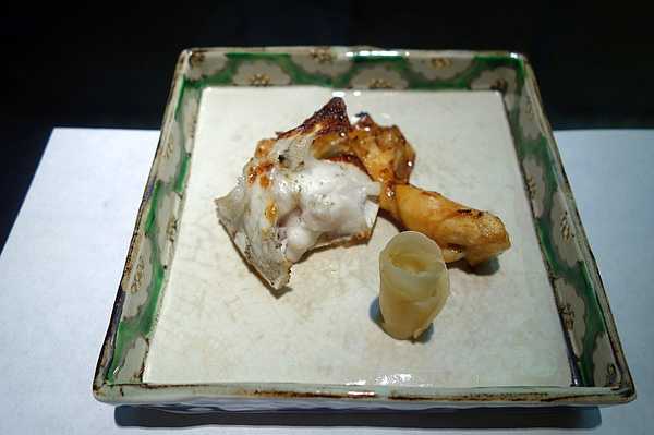 我本来以为自己点的是烤河豚套餐,结果吃完了才发现上的是普通套餐,于是又要了一盘小份的烤河豚。左边的是盐烧口味,右边的是酱油口味。个人觉得都有点偏咸。最喜欢的还是刺身和炸河豚。
