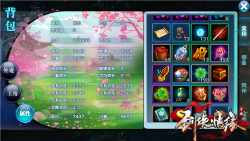 力量、攻击、五行(金木水火土)伤害、会心伤害、会心几率、吸取生命、属性效果几率、灵巧、反弹近程伤害、反弹远程伤害等。