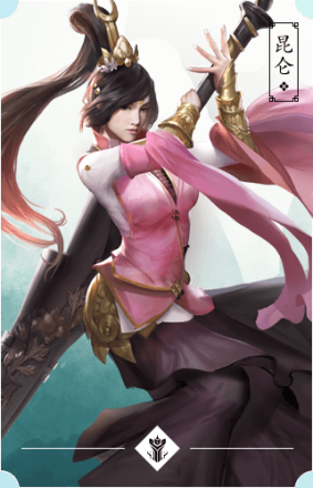 昆仑派远处西域,立于昆仑山,其位于新疆和青海交界处,具有“万山之祖”的显赫地位,被誉为“中国第一神山”。该派很少步入中原,出了一个百年不遇的奇人,在中原武林闯下了赫赫威名后,才开始闻名。在几位得力掌门的努力下,渐渐成为江湖上一大门派,雄踞西域,与中原各大门派抗衡。昆仑派自称为名门正派,但野心勃勃,总想称霸中原武林。该派弟子有男有女,弟子可以婚配,不禁荤食。野心和阴险狡诈是该派的最大特点。