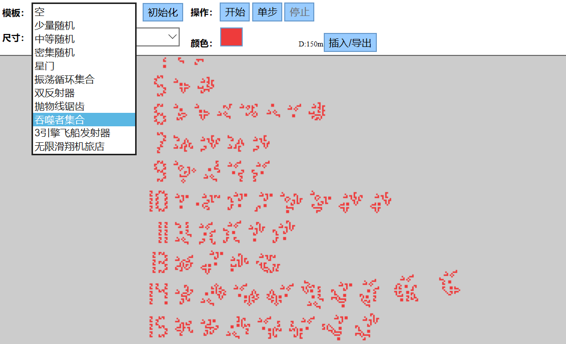 打开以后是Game of life的操作界面,简单拖拽鼠标创建初始状态,点击“开始”,系统就会自动按照生命游戏的规则进行演化。