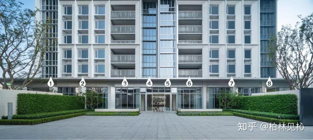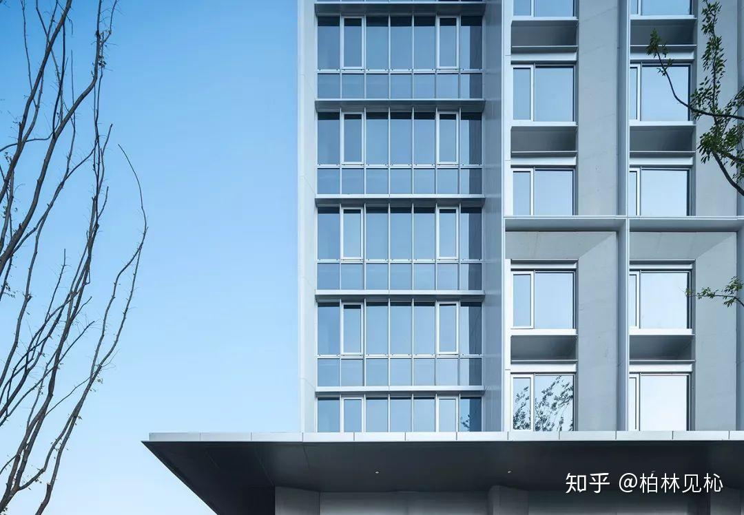 2. 八组外立面交汇成了一个外立面,犹如中国古典时代的律诗。细致来看,最右侧窗框是灰色,最左侧窗框是白色,中间玻璃也是一进一退,细节非常丰富。刘德科先生用了很棒的一词来概况:「谦逊而隐蔽的复杂性」;