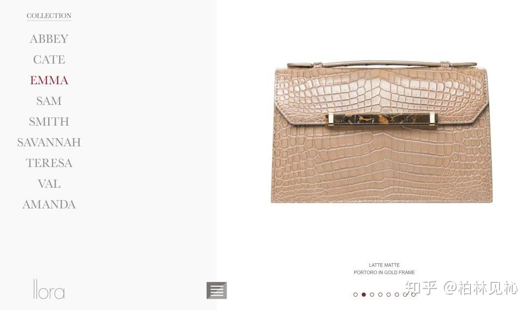 曾太太的包,比爱马仕略便宜一些,是那种非常有气场的小众奢侈品牌,叫「llora」。在其官网( http://www. llora.com )上,你可以见识到那九款鳄鱼包的美,你同样可以感受到那种「谦逊而隐蔽的复杂性」。