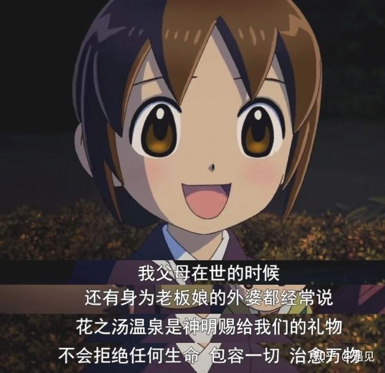 再说说这个人类最崇高的美德之一——“原谅”。前面外婆一再教导小织对待客人要极尽关爱和温暖,用心对待客人、包容客人,“花之汤温泉不会拒绝任何生命,包容一切”在影片中也多次提及。编剧其实想借“原谅”这一高潮表达影片最想要传达的价值观:真正能治愈一切的,是人类的包容之心。人要像温泉一样,原谅一切,治愈一切,包容一切,将爱和温暖传递给他人。这也就是这部电影在宣传时强调的“接纳一切,治愈一切”。