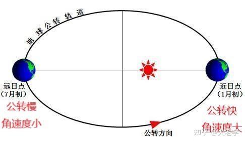 第二个简化是:地球轨道是圆形的。地球的公转轨迹实际上是一个椭圆。但这也是一个不错的近似,因为地球近日点和远日点的互相之间只差约3%,还是非常小的。