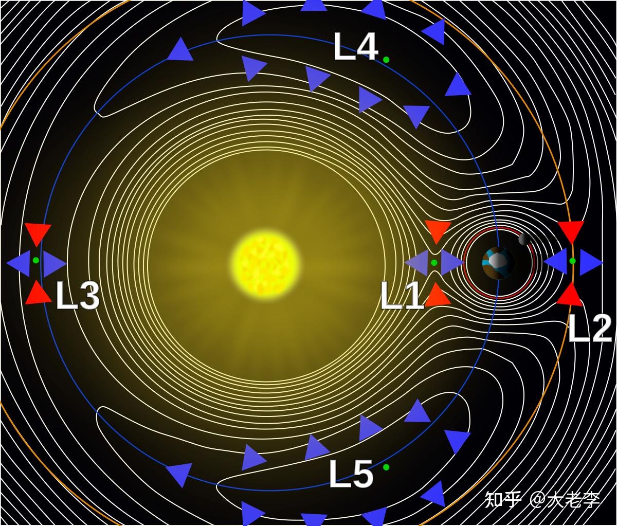 但首先要说明一点,“拉格朗日点”这个概念,本身有两个层次上的含义。一个是纯数学上的拉格朗日点,那就是三个质点在万有引力作用下的周期运动。而另一个层次上的含义,是航天工程上的“拉格朗日点”,这是本文中,主要聊的拉格朗日点,而且是“地日系统”下的拉格朗日点,也就是三个质点中的两个,分别是地球和太阳。