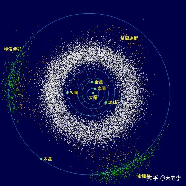 但稳定平衡的副作用是,有很多天然的物质,容易靠近和积聚在这两个位置。现在已经观测到,在地日的L4和L5点附近,有一些星际尘埃和至少两颗小行星。那么殖民飞船要到那个位置,就需要考虑如果避免和星际尘埃和小行星的碰撞问题。而太阳和木星系统的L4和L5点上,则有上百万的这样的小行星。