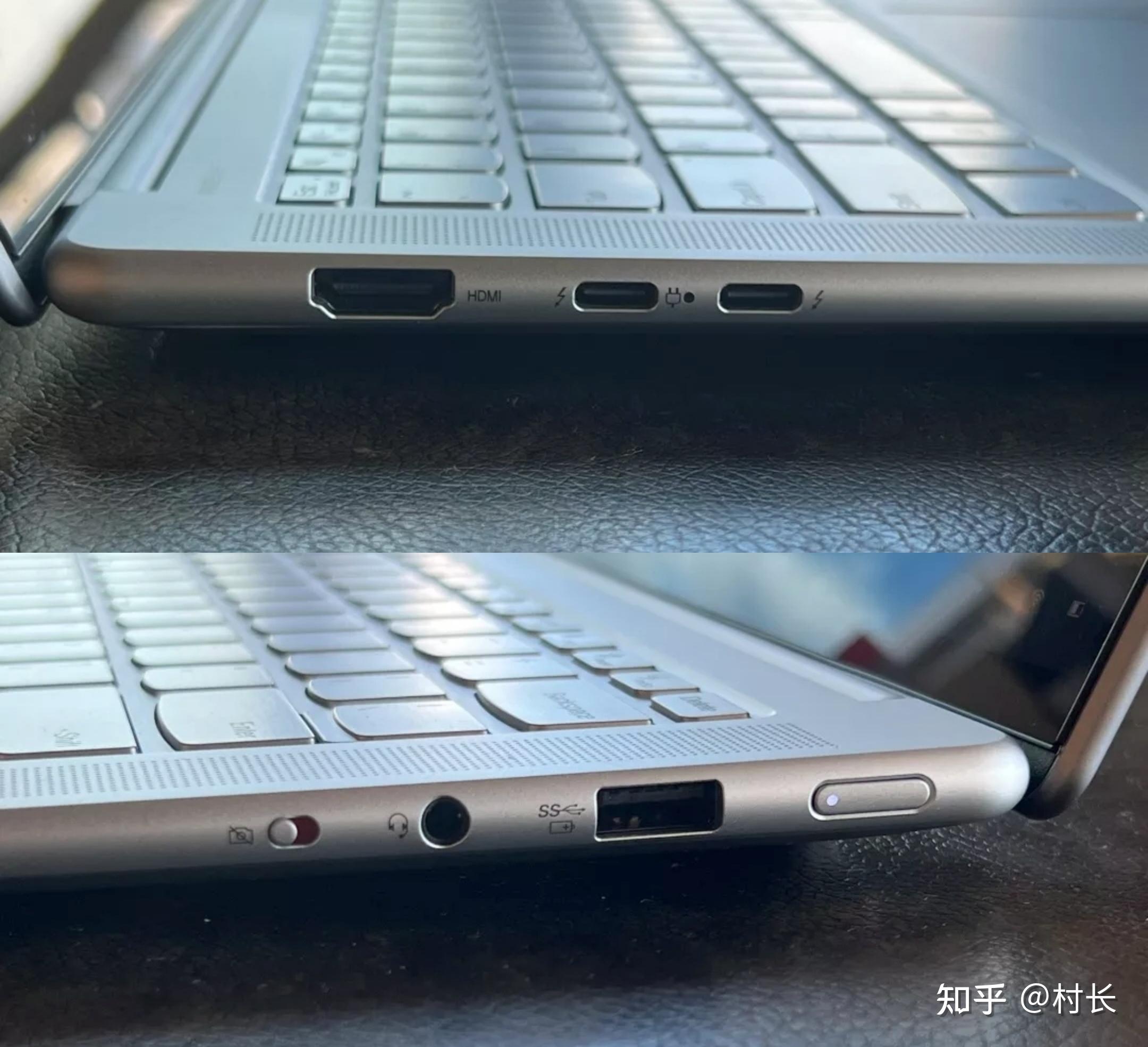 机身左侧依次为全功能Type-C、USB3.2 Gen1 Type-A、HDMI2.0、雷电4、3.5mm音频接口。