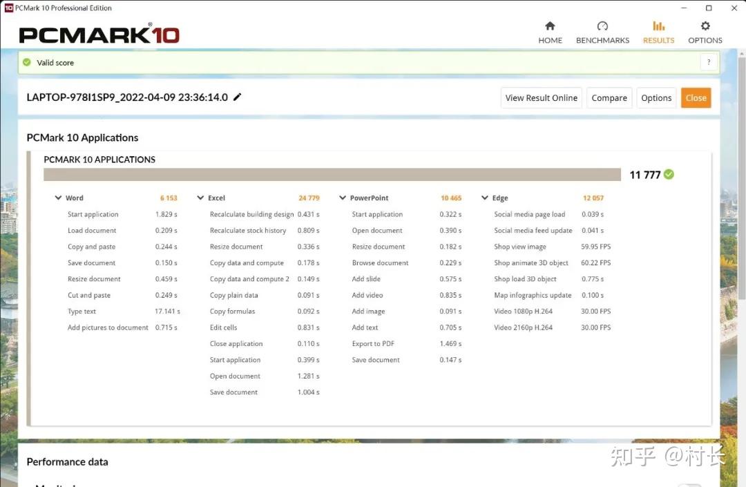 在 Office 办公场景的应用程序测试中,能达到 11777 的成绩,不管是应用程序启动还是 Excel 中的复杂运算都能做到秒开秒出结果,这对办公效率和体验会有很大提升