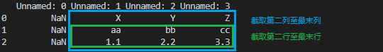df.columns = pd.Index(xl.iloc[0]) # xl.iloc[0]获取xl变量中数据表的第0行