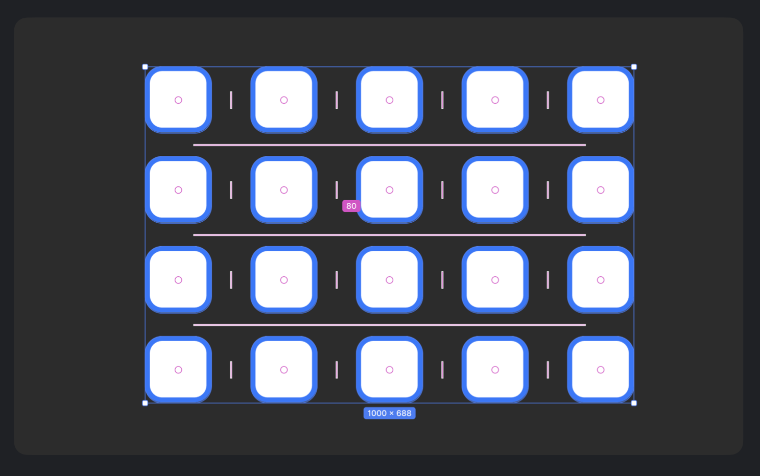 MasterGo 里 「容器」 的概念可以单独说一下。容器的主要作用是帮助界面中的元素精准定位,比如说,我们要输出一个 64×64 px 的图标,而图标的载体尺寸是48x48 px ,那么就可以建立一个输出尺寸的容器,再把对应的图标放在容器中居中对齐即可,作为设计师就不需要再单独预留出来一个 64×64 px 的空白图层。