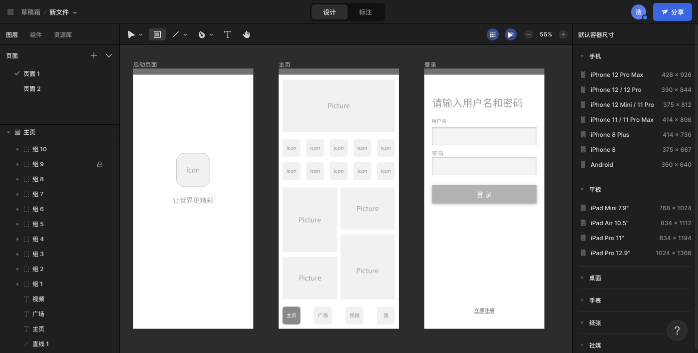 对于产品经理和交互设计师,如果要输出线框图,可以直接通过预设的容器来快速搭建。以往你可能要单独找一些插件才能实现的功能,在 MasterGo 里都变成了标配。相对来说,比 Axure 之类的工具要更简单。但也有不足之处,比如说现阶段不能做到页面之间的串联,不过还是可以高效输出线框图。以后随着版本的升级,这方面的功能支持应该会越来越全面。