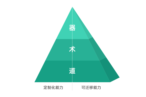 我在互联网行业工作的这十几年,正是移动互联网行业蓬勃发展的十几年,互联网人的方法论体系也在迅速进化。我认为,互联网人应具备的能力框架包括器、术、道三个层面,器指的是各种可以电脑软件的工具,术指的是各种流程和方法,道指的是顶层的思维方式与认知系统。其中“器”是入门学习的基础,有了一件趁手的兵器,才可以帮助你去探索更高层次的方法。而一个好用的器(工具),应该把术(方法)和道(思维)结合进去,尽最大可能帮助设计者发挥自己的能力。