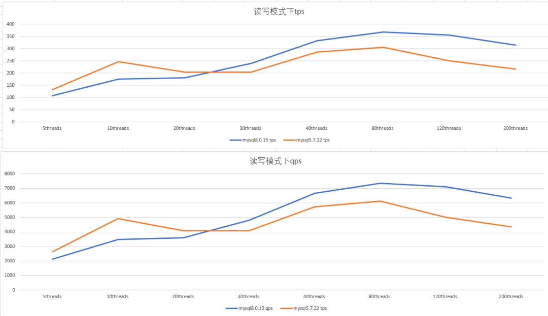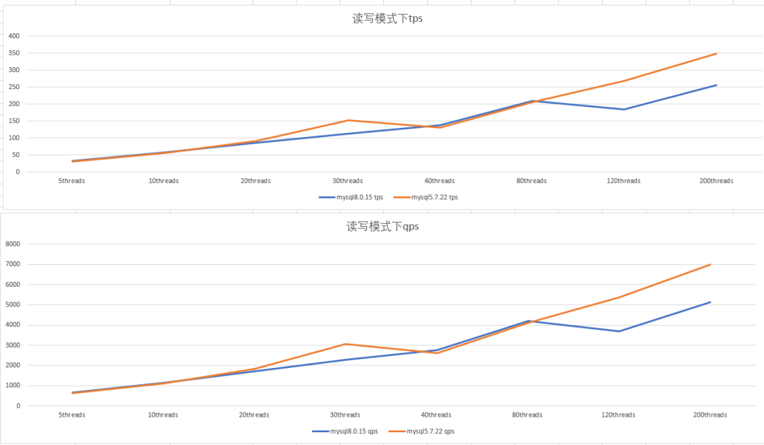 mysql5.7和mysql8.0 在读写模式下的表现