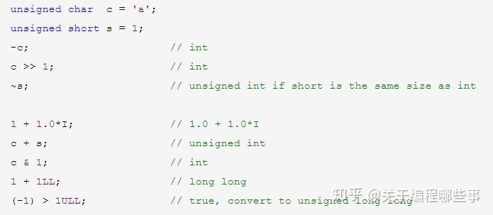 (2)若操作数中没有浮点数,则先做整型提升。提升后若一个类型包含另一个,则转换为较大范围者,否则转换为较大范围的无符号类型。
