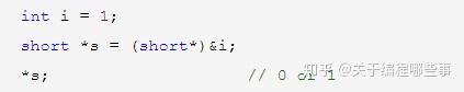 联合 也可以包含不同类型的成员,但它们的地址都是一样的(等于联合本身的地址),也就是说成员在内存里有重叠。联合中也可以有位域,它们也是互相重叠的。联合一般用于结构的分情况解释或数据的局部操作,后者的一个例子是大小端判断。