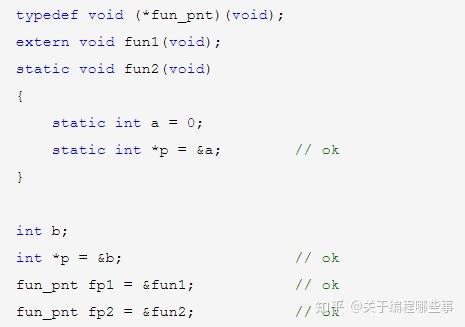 还有一类指针常量就是静态存储的变量的地址以及函数的地址,它们可以用于初始化静态存储的变量(必须用常量初始化,见下章)。