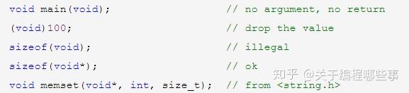void 严格来说不是一个类型,单独使用时表示“没有”,仅用于表示函数返回、函数参数和表达式。void指针仅表示数据地址,而无数据的类型信息,它取代了旧规范库中一些场合的char指针。