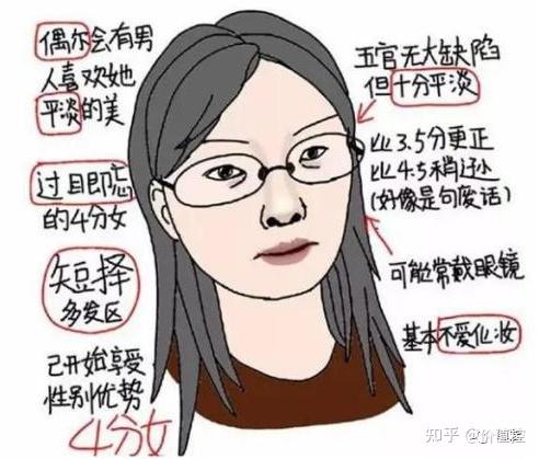 比三分女略强,通常是我们所说的中等偏下,精心打扮可以提升一点姿色。