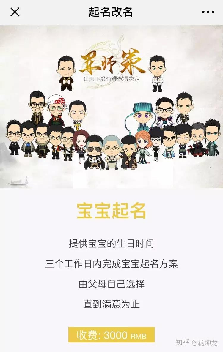 分 “宝宝起名” 和 “成人起名” 两个不同类型,但是收费都是 3000 元;