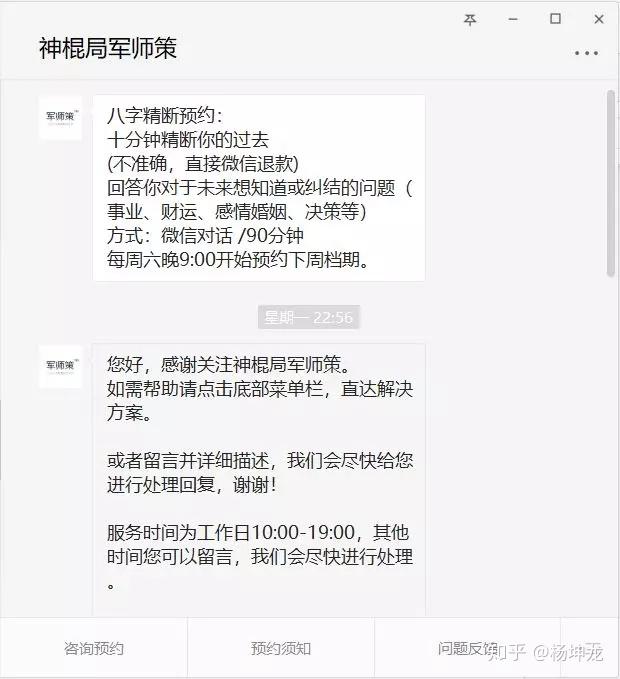 后来由于业务需要,又创了一个 「神棍局九爷」(现改名“神棍局军师策”), 用于专门提供命理咨询等服务。