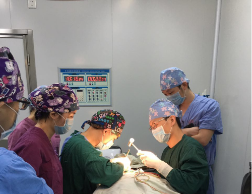 2,术中暴露两侧鼻软骨以及鼻骨。矫正侧鼻软骨的高度,若鼻骨较高则需要截鼻骨,使鼻骨与软骨的高度与鼻梁标准线同一水平线。