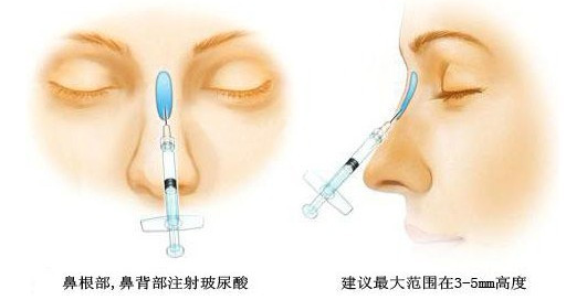 填充法主要适用于轻度的驼峰鼻,可使用玻尿酸将这个凸起的驼峰部位上下两端落差填补平,让鼻背呈现一条直线。