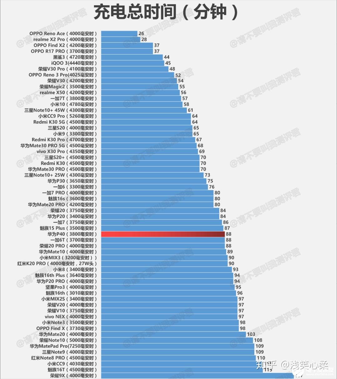 充电方面,P40仍采用祖传22.5W,在目前的旗舰机里确实很不够看,不过这套快充被打磨多年也快成精了,半小时充入电量也勉强跻身中间排名,只是从大约94%开始,涓流充电速度太慢,导致充电总时间较长。