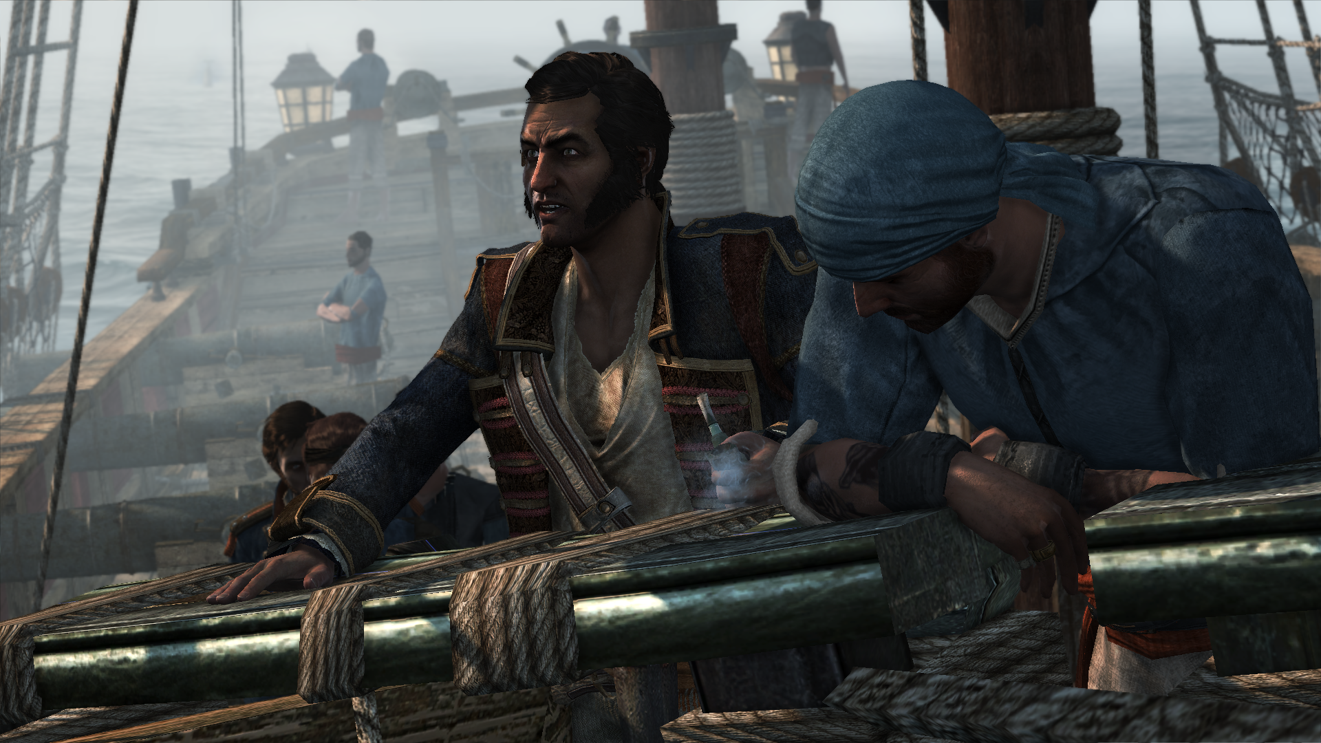 在历史上,霍尼戈尔德有着不可思议的登船技术,这反映到游戏中他教导爱德华如何登船。