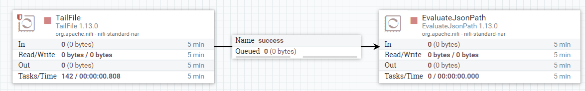 3、连接“TailFile”处理器和“EvaluateJsonPath”处理器