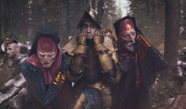 (注意女妖第二次喊的时候,黄金铠甲的骑士是在教会人员搀扶下捂着耳朵的。)
