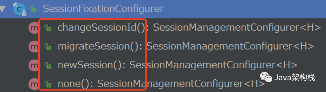 而在Spring Security中,防御会话固定攻击的方法则非常简单,我们只需要在用户登录之后重新生成新的session即可。在我们编写的SecurityConfig类继承WebSecurityConfigurerAdapter时,Spring Security默认已经启用了该配置,主要是利用SessionManagement这个配置器来实现,并且提供了防御会话固定攻击的4种策略。