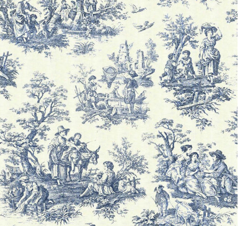 朱伊图案是法国传统印花布图案,朱伊纹样源于18世纪晚期法国小镇朱伊,朱伊纹样是以人物、动物、植物、器物等构成的田园风光、劳动场景、神话传说、人物事件等连续循环图案。