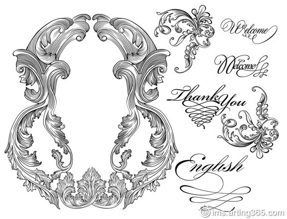 下图茛苕叶形象演化出来的几种常见欧式花纹: