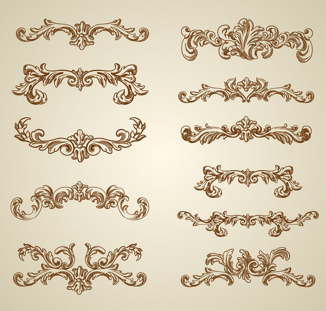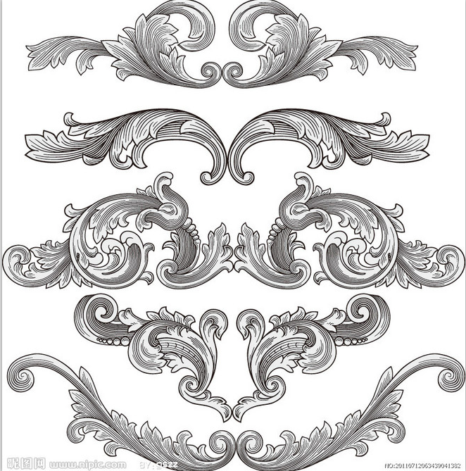 卷草纹样式灵动多变,可以构成很多样式,许多欧式中的角花也是卷草纹组成的。欧式卷草纹也可以与其他花纹组合在一起变的更加繁复美观