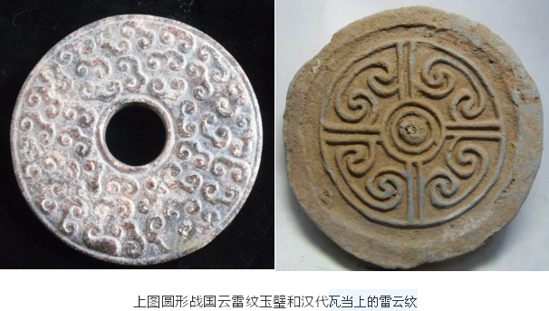 云雷纹为简单的几何型纹路,模拟云彩,形式注重写意,经常在陶器或铜器上出现,基本特征是以连续的回旋形线条构成的几何图形。现代人认为后来的云纹就是云雷纹发展而来,图案呈圆弧形卷曲或方折的回旋线条。方折的回旋线条的称为雷纹,圆弧形的为云纹。