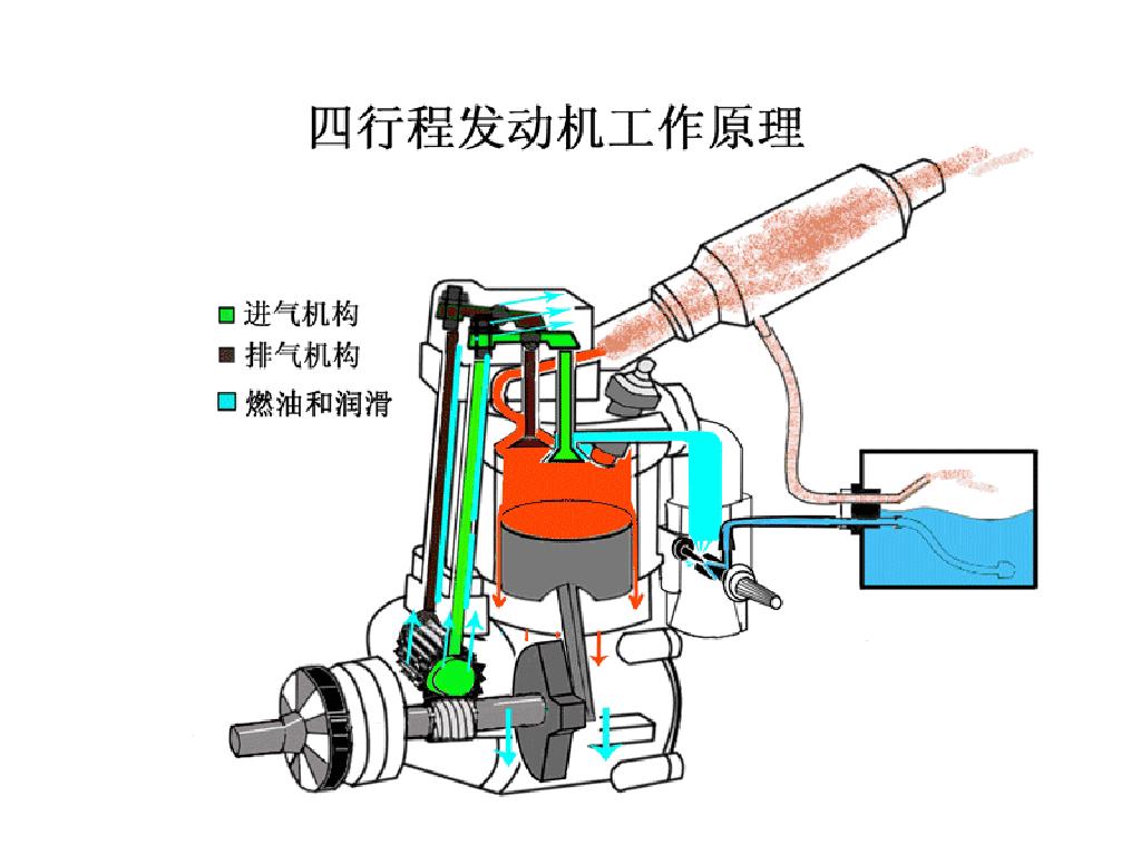 气缸: 圆筒形金属机件,是活塞运动的轨道,燃气在其中燃烧及膨胀。
